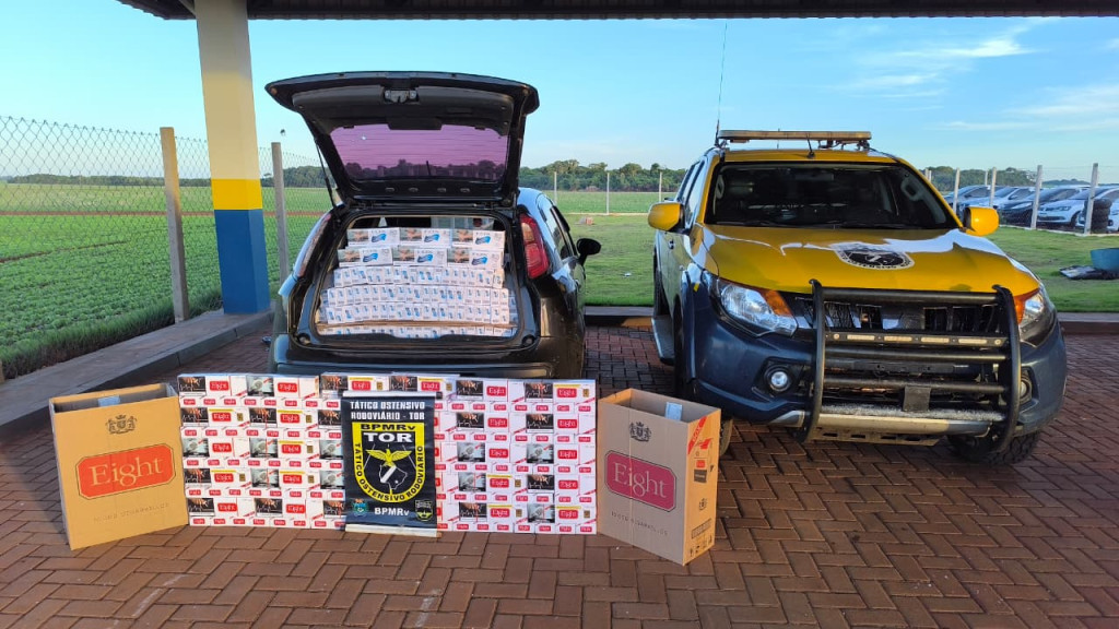 Na vistoria, os militares localizaram vários maços de cigarros de origem estrangeira, configurando contrabando. No veículo estavam dois ocupantes, que informaram ter buscado a mercadoria em Ponta Porã, na fronteira com o Paraguai, e levariam até Campo Grande.