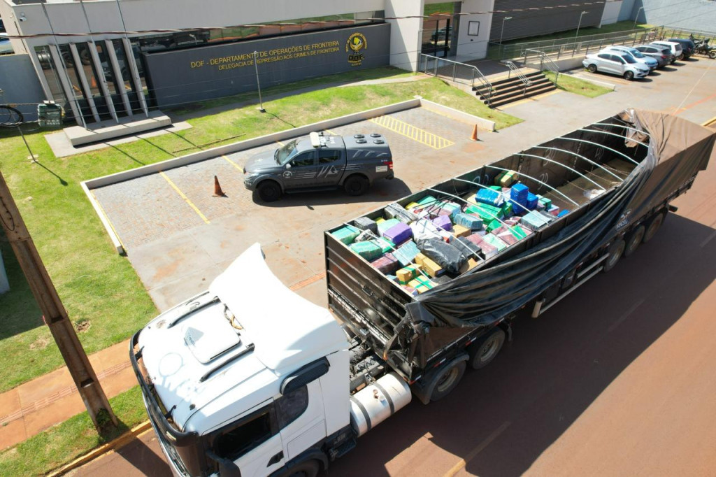Três homens foram presos em ação conjunta deflagrada pelo DOF (Departamento de Operações de Fronteira) e a Defron (Delegacia Especializada de Repressão aos Crimes de Fronteira) na quarta-feira (4/3), em Mundo Novo. Na ocasião, 11,4 mil quilos de maconha, que seguiam em uma carreta carregada com soja, foram apreendidos. Outros dois veículos também foram apreendidos.