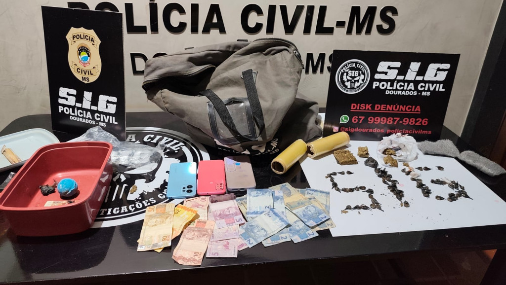 Quando a equipe chegou ao local, Poliana e o menor tentaram esconder o ilícito, porém, sem sucesso. Os policiais apreenderam dinheiro, celulares e material para embalar droga e porções de maconha e crack.