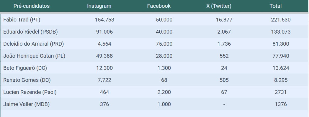 Pré-candidato ao governo, Fábio Trad passa Riedel em popularidade nas redes sociais